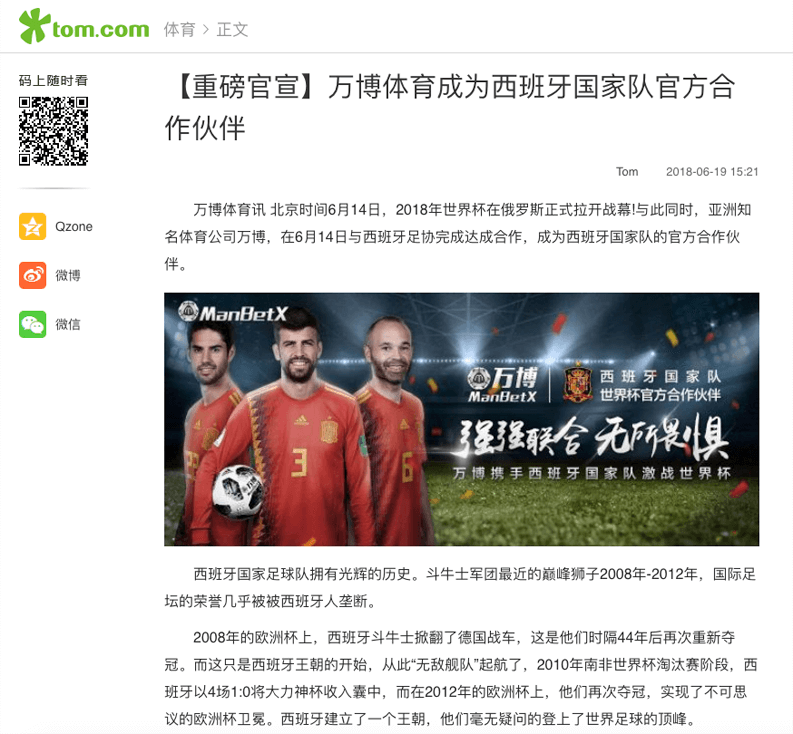 西班牙国家队官方媒体合作伙伴(WB体育传媒)